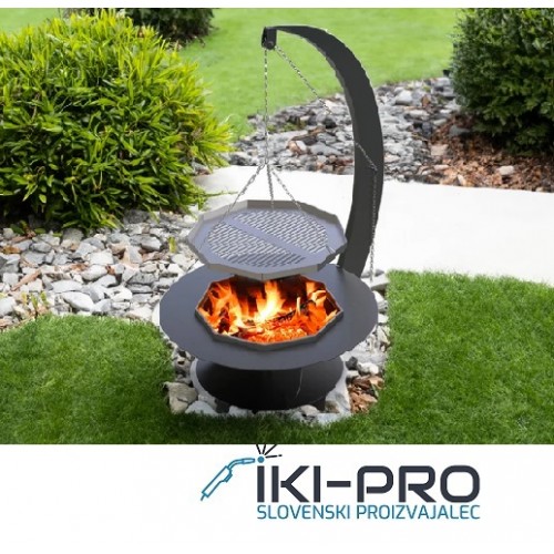 The garden fire pit is not just for burning wood but also for grilling. Use it with a grill grate, a cooking plate, or for preparing food under the lid. You can roast skewers, sausages, corn, potatoes, chestnuts, and more. Contact us for more information about grilling accessories.